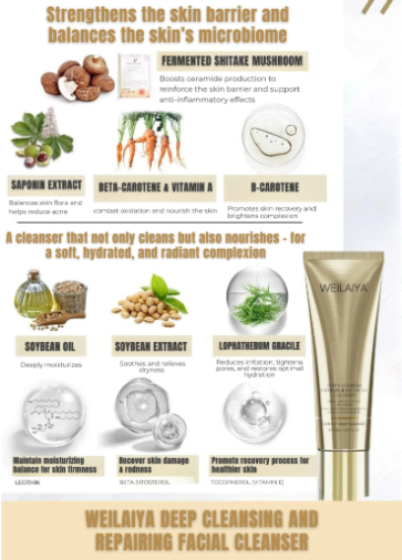With its ultra-fine foam technology and nutrient-rich formula,Ā Weilaiya Deep Cleansing & Repairing Facial CleanserĀ delivers a spa-like skincare experience right at home: deeply cleansing, soothingly gentle, and intensely hydrating.