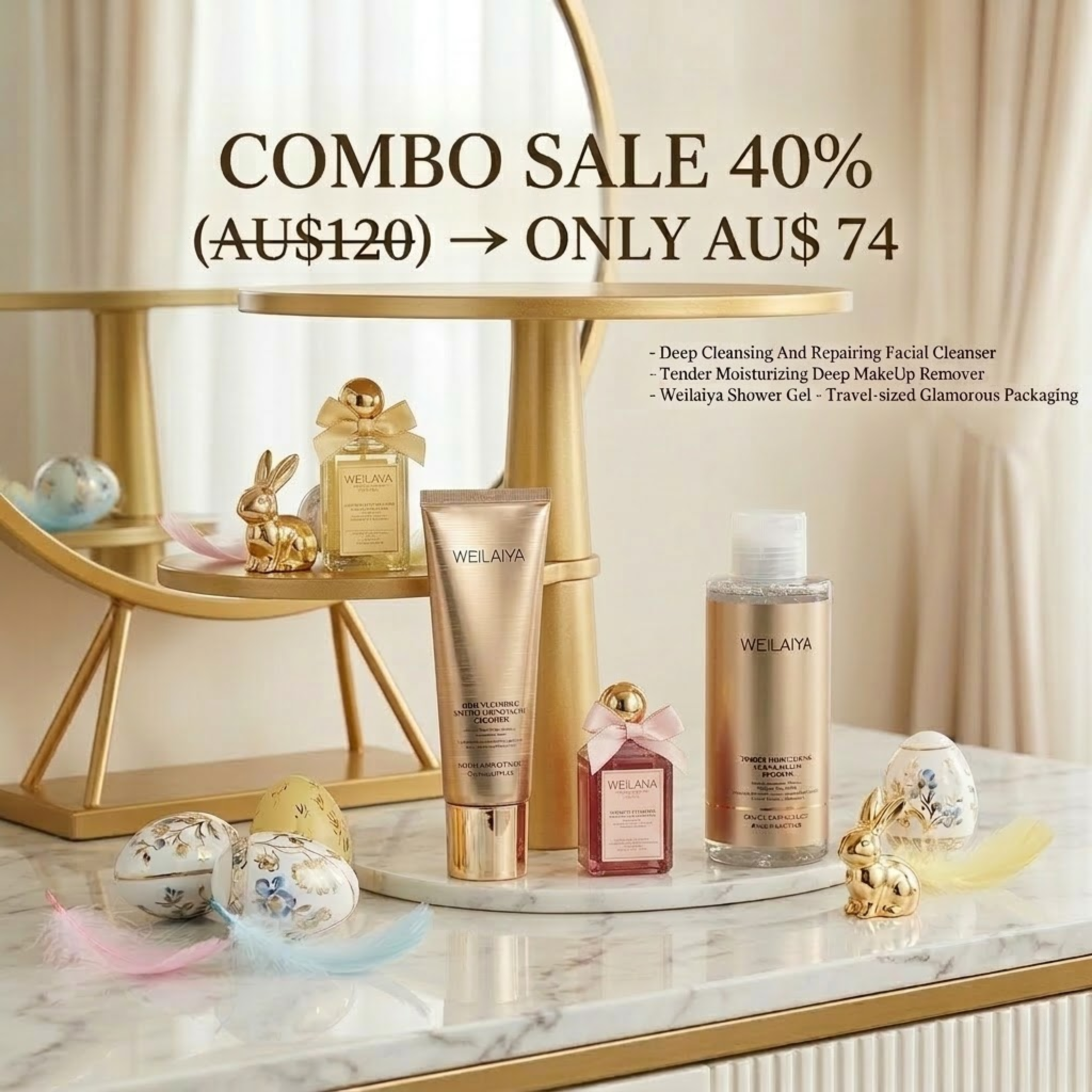 COMBO Easter Travel Essential: Make-up Remover & Facial Cleanser & Travel-sized Shower Gel
